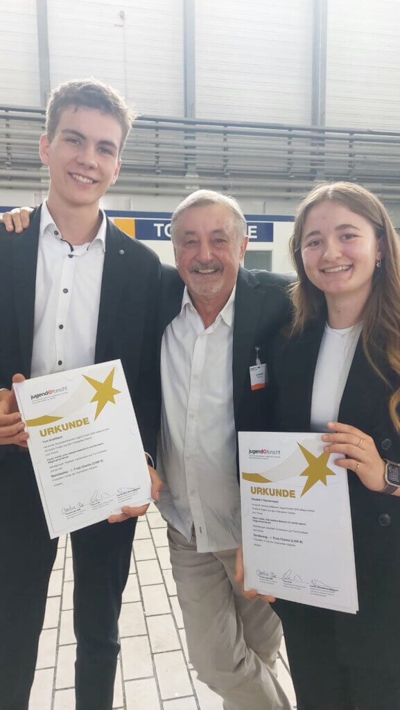 Wir platzen vor Stolz! 💥 Unsere Schüler Elisabeth Fischermann und Tom Kreßbach haben beim Bundesfinale von Jugend forscht 2025 den 1. Preis im Fachbereich Chemie geholt! 🙌