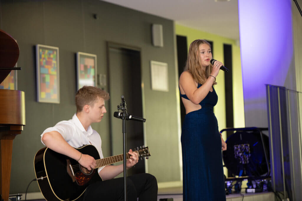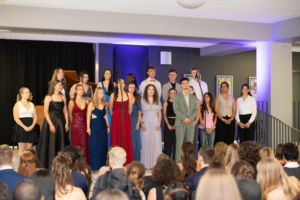 Musikalische Beiträge von Anna Günther (Klavier), dem Vokalensemble der zwölften Klassen sowie Caroline Röthel und Moritz Kulka (Gesang und Gitarre) umrahmten stimmungsvoll die Veranstaltung. Nach der Zeugnisübergabe fand mit der lang erwarteten „Fiesta“ im Bürgerzentrum Elsenfeld der Abend seinen fröhlichen Ausklang.