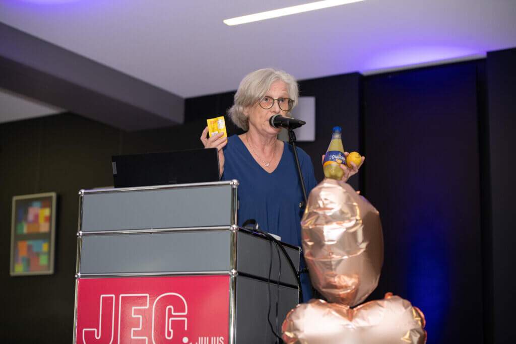 In der Aula der Schule dann die Fortsetzung, beginnend mit einer Begrüßung durch zwei Abiturientinnen: Edona Sadiku und Luana Inguaggiato blickten auf eine „unvergessliche Reise“ ihres Jahrgangs zurück. Durchhalten sei oft gefragt gewesen, doch am Ende habe man es „einfach gewuppt“. Jeder und jede habe so eine ganz eigene Geschichte geschrieben. Ohne Hilfe sei dies freilich nicht möglich gewesen. Deswegen galt ihr besonderer Dank den Eltern und Lehrkräften. Bernd Schötterl, stellvertretender Landrat, überbrachte in seiner humorvollen Ansprache zuerst eine schlechte Nachricht: Lernen höre mit dem Abitur nicht auf. Gleichzeitig betonte er, wie wichtig es sei, Mut zu haben und sich weiterzuentwickeln. Rückschläge seien Teil des Weges, aber entscheidend sei, „die Krone zu richten und den Thron des Lebens wieder zu besteigen“. Auch Elsenfelds Bürgermeister Kai Hohmann sprach dem Jahrgang seine Glückwünsche aus. Mit einem Zitat von Sokrates – „Ich weiß, dass ich nichts weiß“ – erinnerte er daran, dass Erkenntnis mit Bescheidenheit beginnt. Mit einer klaren Botschaft wandte sich sodann Joachim Oberle vom Freundeskreis des JEG an die Abiturienten: „Wir, das Land, Europa, die Demokratie brauchen euch!“ Nicht spalten, sondern gemeinsam Zukunft gestalten sei die Devise. Marion Lebold, Vorsitzende des Elternbeirats, griff in ihrer Rede das Abiturmotto auf: „13 Jahre Siesta – jetzt Fiesta“. Nach Jahren des Lernens dürfe nun auch gefeiert werden. Angesichts des bestandenen Abiturs lag für Lebold eine Frage nahe: „Was könnt ihr erst leisten, wenn ihr hellwach ins Leben startet.“ Ein besonderes Geschenk für den Jahrgang hatte Schulleiterin Petra Hein dabei: Zitronen und Vanillezucker. In ihrer Rede spielte sie nämlich nicht nur metaphorisch auf die Redewendung „Wenn das Leben dir Zitronen schenkt, mach Limonade draus“ an. Genau wie man aus Zitronen köstliche Limonade bereiten könne, so auch aus den Herausforderungen des Lebens Chancen und Möglichkeiten. Dabei sind wir nicht nur passive Opfer, sondern können aktiv gestalten.