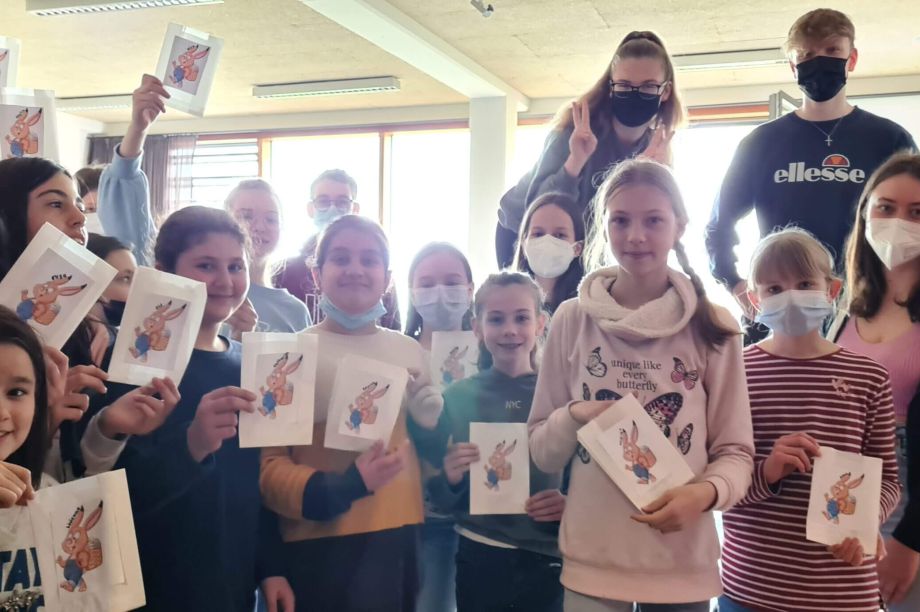 Fairtrade AK beschenkt alle Schülerinnen und Schüler des JEGs anlässlich des Schuljubiläums