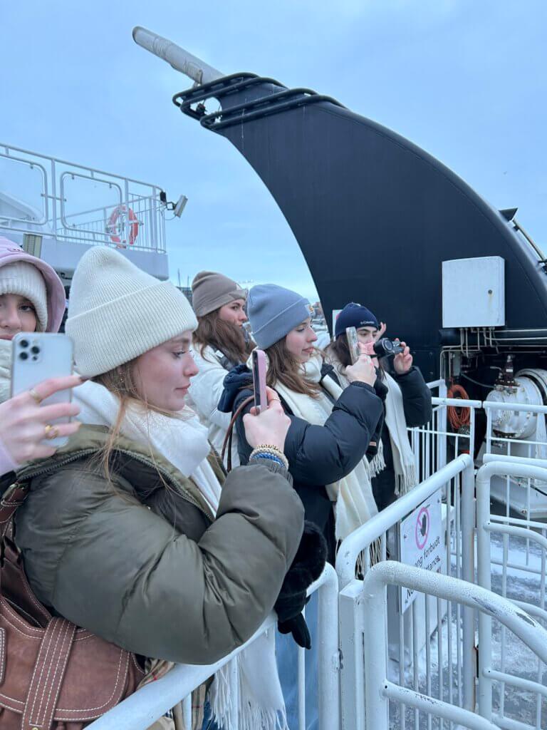 Der Samstag begann früh am Morgen mit dem Besuch des Fram-Museums. Ziel war es, als erste Gruppe das berühmte Polarschiff zu betreten, mit dem einst Expeditionen in Richtung Nordpol unternommen wurden. Der Rundgang durch das originale Schiff war für viele ein absolutes Highlight und vermittelte Geschichte auf eindrucksvolle und unmittelbare Weise. Anschließend ging es mit dem Bus weiter ins Norsk Folkemuseum. Dort tauchten die Schülerinnen und Schüler in die nordische Kultur ein: In lebendigen Darstellungen zeigten Handwerker wie Schmiede und Bäcker das Leben früherer Zeiten und machten Geschichte anschaulich erlebbar. Nach dem gemeinsamen Mittagessen im Stadtzentrum folgte eine Stadtführung durch Oslo, bei der weitere Einblicke in Geschichte, Architektur und Alltag der norwegischen Hauptstadt gewonnen wurden.