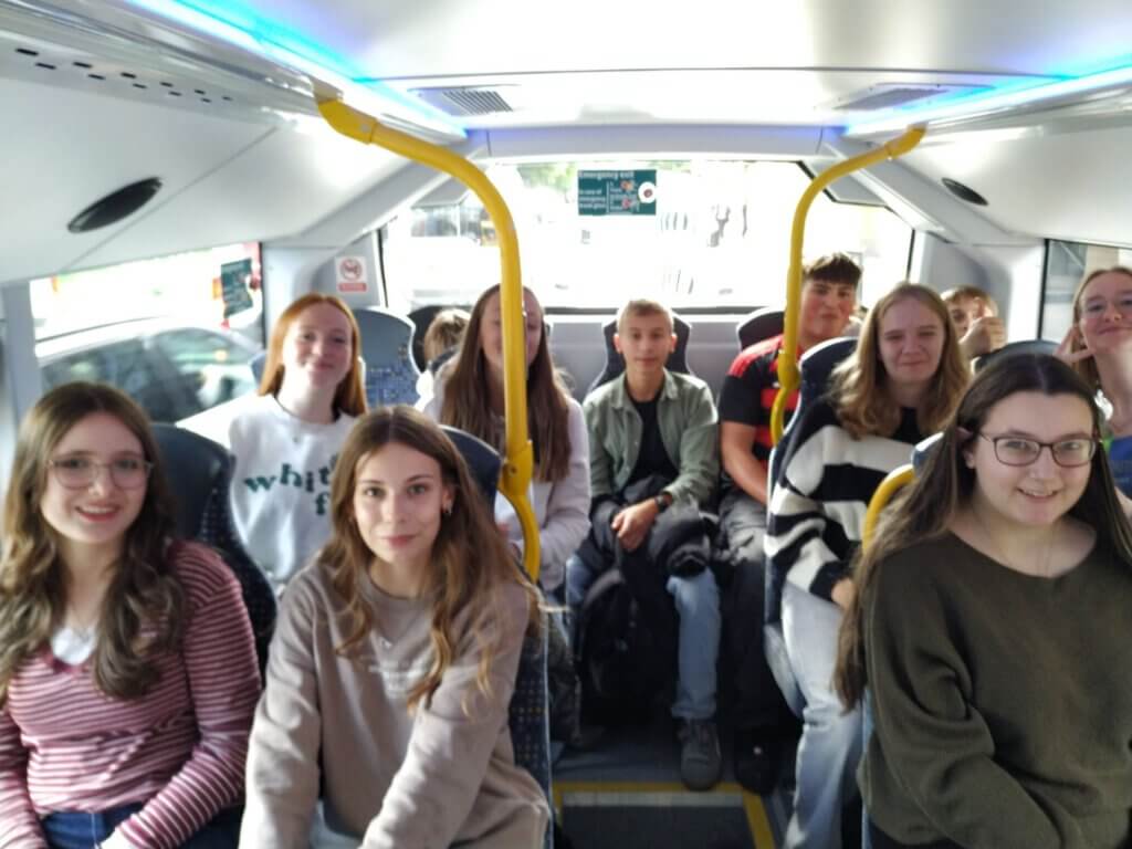 We spent one week in Crewe, in England, with our exchange students and on Wednesday, the last day before we returned to Germany, we went to Liverpool. We took a train to Liverpool for a day trip. Our first stop was the Central Library in St George’s Quarter. The building was huge and beautifully designed, with modern reading areas and historic architecture. Then we walked through the city centre to the harbor, saw the Beatles’ statue, and took a ferry across the River Mersey to enjoy Liverpool’s skyline. We continued past the Royal Liver Building and visited the World Museum. It had fascinating exhibitions on Ancient Egypt, nature, and space. Each room offered something new to discover. Afterwards, we had some free time in the city centre and went shopping for gifts for our families and host families, mostly snacks and souvenirs from a local grocery store. Unfortunately, every good thing comes to an end, so we had to go back to the train station, after spending a great day in Liverpool. On our ride back we all decided to write a small letter to our exchange students to thank them for the good time we had in England. After a while we arrived in Crewe and reunited with our exchange partners and could spend the rest of the day with our host families.
