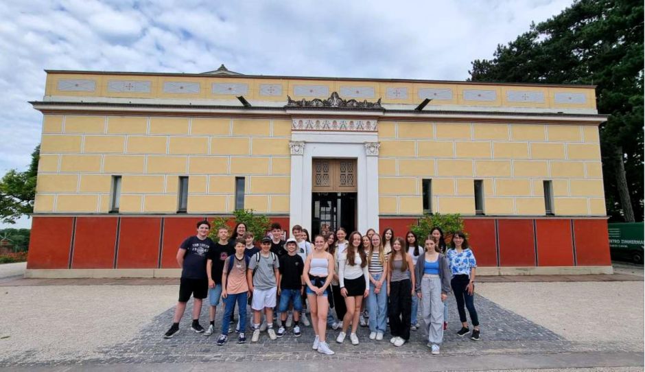 Am 10.07.2024 bekamen 30 Lateinschülerinnen und -schüler der 8. Klassen des Julius-Echter-Gymnasiums beim Besuch des Aschaffenburger Pompejanums die Gelegenheit, die Antike hautnah zu erleben.