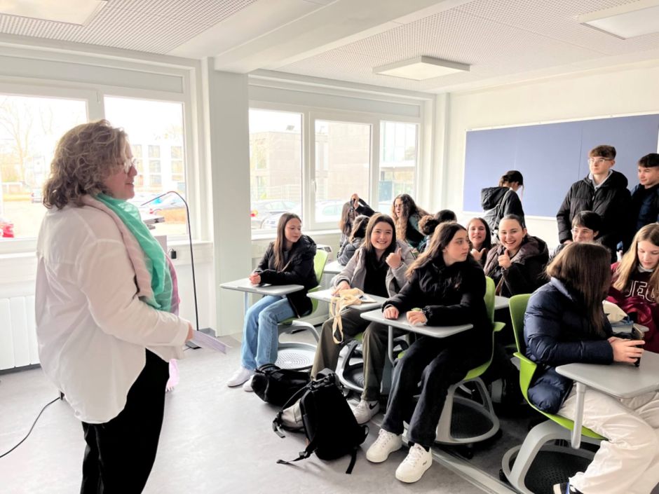 Nach anfänglichen Hemmungen beteiligten sich bald viele interessierte Schülerinnen und Schüler lebhaft am Gespräch. Die andere Klasse, die mittlerweile die Campusführung beendet hatte, stärkte sich mit leckerem Kuchen und einer Vielzahl an Getränken, die von der technischen Hochschule zur Verfügung gestellt wurden.