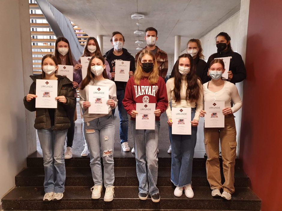 Drei Schülerinnen der Klasse 8A und neun Schüler und Schülerinnen der 9+B haben sich der Herausforderung gestellt und mit viel Elan und großem Zeiteinsatz Erklärungen für die Effekte des Schwarzlichttheaters gesucht. Neben Knicklichtern und Textmarkern, wurde im häuslichen Labor auch mit Kastanienzweigen und Vanillepuddingpulver experimentiert. Die dokumentierten Ergebnisse wurden anschließend zur Bewertung durch die Fachjury eingeschickt. Die erfolgreiche Teilnahme wurde nun mit einer Urkunde belohnt.