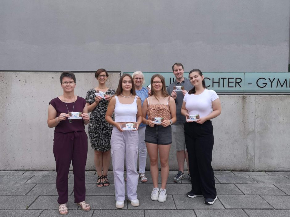 Schon vor den Sommerferien übergab Claudia Hartung, Leiterin unserer Geschäftsstelle in Elsenfeld, die Spende an die Mitglieder der Fairtrade-AG.