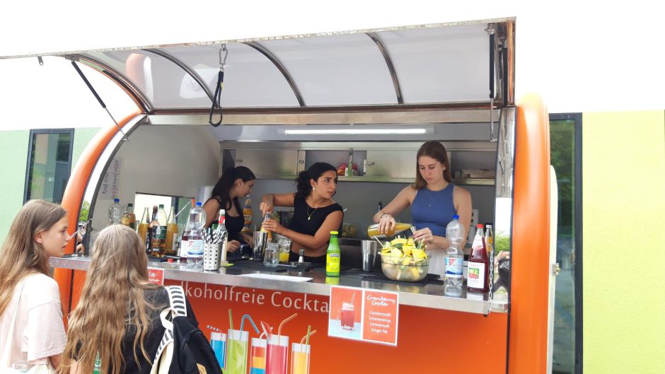 Die Aussicht, sechs Stunden lang in der prallen Sonne zu stehen, anstatt im Schulhaus im Unterricht vor sich hin zu dösen, wird nur dann zum Lichtblick, wenn man in dieser Zeit lernt, fruchtige Cocktails zu mixen mit viel Eis zum Kühlen!