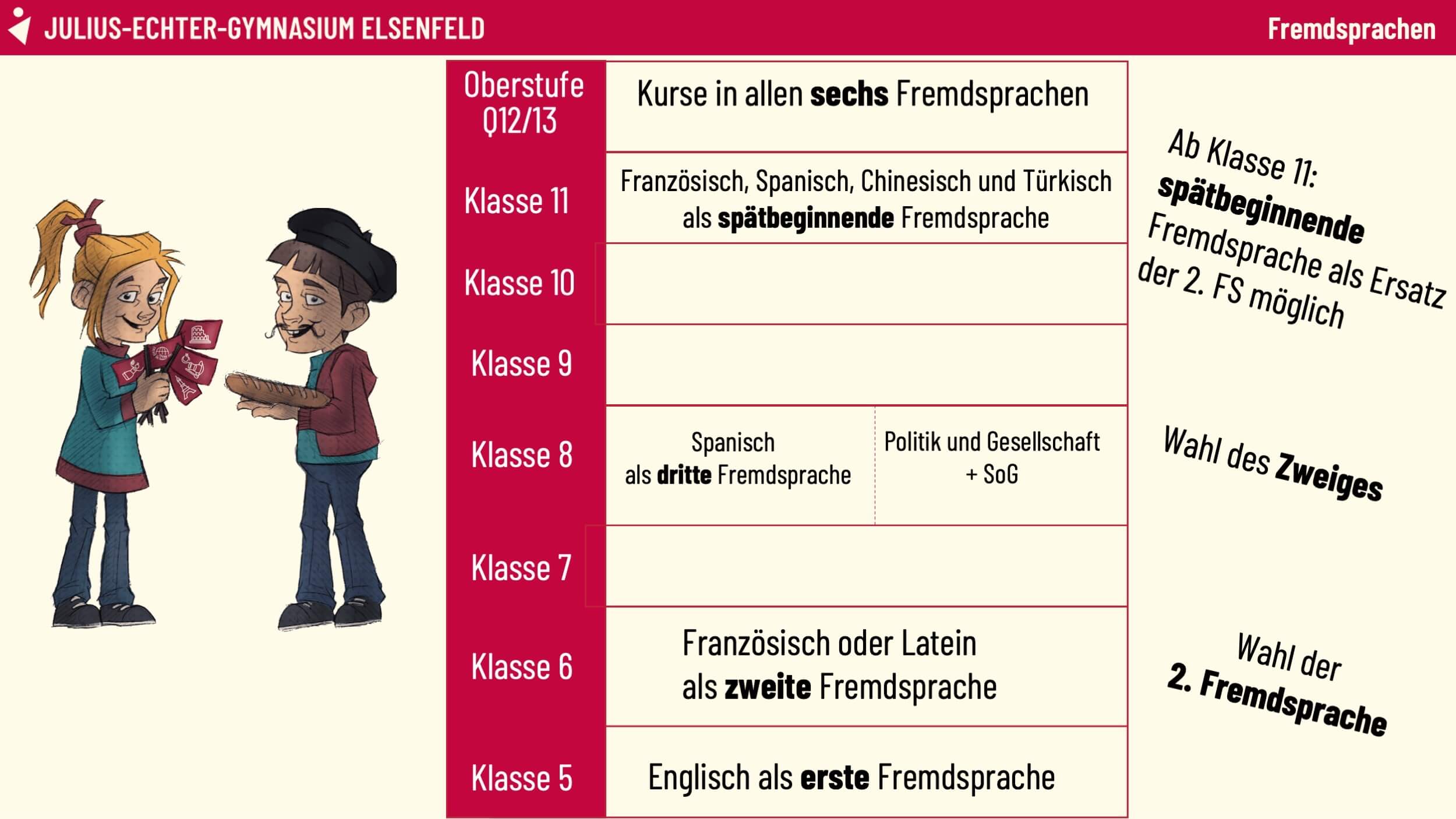 Welche verschiedenen Möglichkeiten der Sprachenwahl es am JEG gibt, das erfährst du in der folgenden Kurzübersicht: