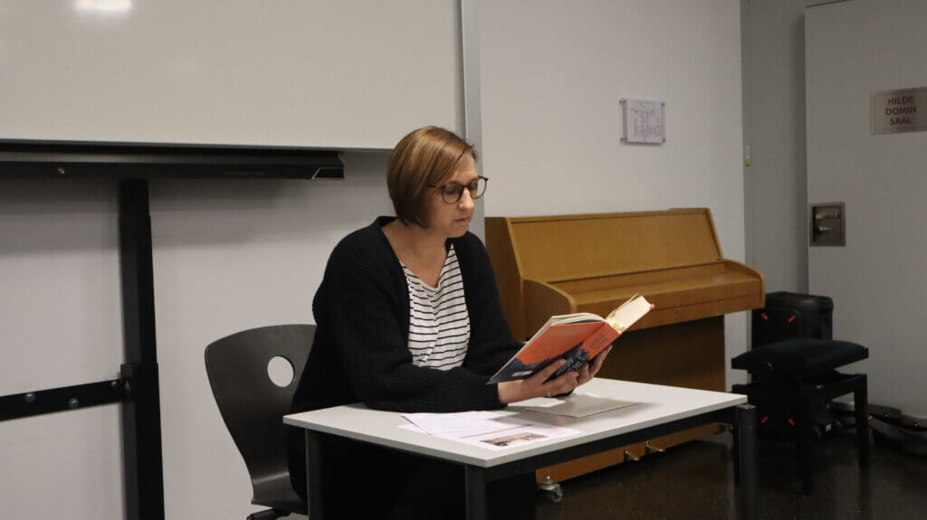 Nach einer kurzen Pause ging das Programm mit Texten von Ernst Jandl, Erich Fried, Stig Dagerman und Moritz Seibert weiter, ausdrucksvoll vorgetragen von Susanne Ingenbleek, Jens Pollakowski und Susanne Pfefferer. Höhepunkt dieses zweiten Teils war sicherlich Harmut Beils Lesung einer Szene aus dem Nachkriegsdrama „Draußen vor der Tür“ von Wolfgang Borchert. Beils Vortragskunst ließ die Zuhörerschaft deutlich ergriffen zurück. Mit dem Text „Abschied von Amerika“ setzte Heinz Linduschka durch den schonungslosen Blick auf die von Trump gebeutelten USA den passenden Schlusspunkt unter einen literarischen Abend, der zeigte, wie gerade durch Literatur die Erinnerung lebendig erhalten werden kann.