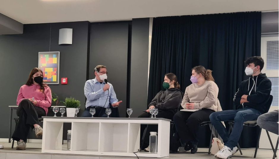 Oberstufenschüler*innen des Julius-Echter-Gymnasiums diskutieren mit Klinikseelsorger Christian Hohm über das Thema assistierter Suizid.