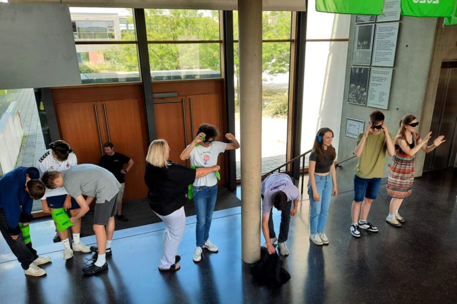 „Das sollten alle Schüler machen müssen!“, steht auf vielen der Feedbackzettel, die am Ende der „Woche der Pflege“ auf dem Tisch der betreuenden Lehrkraft landen. Doch die Projektwoche vor den Sommerferien ist ein Privileg der Schülerinnen und Schüler des Sozialwissenschaftlichen Ausbildungszweiges am Julius-Echter-Gymnasium. Unter der Federführung der Caritas-Sozialstation St. Johannes e.V. in Erlenbach unter Leitung von Frank Wegner-Leisner hieß es, statt das Schuljahr entspannt ausklingen zu lassen, noch einmal anstrengen und anpacken, um „aktuelle Entwicklungen im Bereich der sozialen Arbeit kontroverse politische Positionen und Ziele beurteilen“ zu können. So theoretisch das im Lehrplan klingt, so praktisch behandelt wird das in den Einheiten, die die Kooperationspartner aus der Gesundheitsregion Plus für die Jugendlichen anbieten. Begleitet durch vielerlei Übungen erlernen die Jugendlichen im Laufe der Woche durch Fachkräfte der Caritas, der Roheschen Stiftung Kleinwallstadt, der TH Aschaffenburgundder BRK Pflegeschule Untermain in Erlenbachdie Grundlagen der Hygiene und Desinfektion, der Mobilisierung, der Messung der Vitalfunktionen und die Basics zu Bewegung, Berührung und Nahrungsaufnahme. Sie üben mit Rollatoren, simulieren Einschränkungen im Alter und begeistern sich für Pflegeroboter Pepper, der eine muntere Diskussion über die Chancen der Digitalisierung in der Pflege begleitet. Sensiblere Themen wie Demenz, Organspende und generell die Würde der Pflegebedürftigen lösen nachdenkliche Gespräche aus. Die Beratungsstelle für Senioren und pflegende Angehörige e.V. informiert über ihre Arbeit und die Schülerinnen u. Schüler erhalten die Möglichkeit, die Tagesförderstätte der Lebenshilfe zu besuchen. Die Erfahrung und Authentizität der Pflegekräfte ermöglicht aus Sicht der Jugendlichen eine intensive Auseinandersetzung mit theoretischen, praktischen und gesellschaftspolitischen Themenfeldern der Pflege sowie eine sinnvolle Vorbereitung auf das Praktikum, das im Gegensatz zu ihrem Tag im Kindergarten in der Jahrgangsstufe 9 nun den Blick vom hilfsbedürftigen Kind zum hilfsbedürftigen Menschen im Alter lenkt.