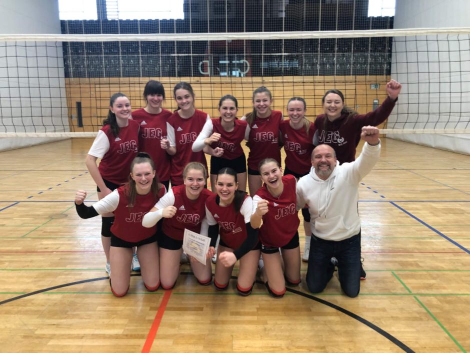 „So ein Niveau hätte ich nie bei einem Schulsportwettbewerb erwartet! Das war ein fantastisches Spiel!“, resümierte ein zuschauender Lehrer anerkennend. Treffender kann man das erste Spiel zwischen dem Balthasar-Neumann-Gymnasium Marktheidenfeld und dem Julius-Echter-Gymnasium Elsenfeld (JEG) nicht zusammenfassen. Beide Mannschaften zeigten sich äußerst spielstark und angriffslustig. Das JEG-Team konnte jedoch beide Sätze souverän für sich behaupten, was vor allem an druckvollen (Sprung-) Aufschlägen und einer geschlossenen Mannschaftsleistung lag. Im zweiten Spiel besiegte man unter den Augen zahlreicher Fans mit großem Vorsprung in den einzelnen Sätzen die Mannschaft des Egbert-Gymnasiums Münsterschwarzach. Auch hier konnten die Spielerinnen durch Spielwitz und -freude überzeugen. In diesem Spiel wurden verschiedene Aufstellungen durchgespielt, sodass alle Spielerinnen der Schulmannschaft zum Einsatz kamen. Alle Schülerinnen zeigten eine tolle Leistung. Für das JEG spielten: Clara Arnold, Jana Ball, Emmy Endres, Lena Heider, Lea Kaiser, Luena Reinhard, Olivia Stich, Ronja Stosiek, Annika Thiel, Nina Weiner.