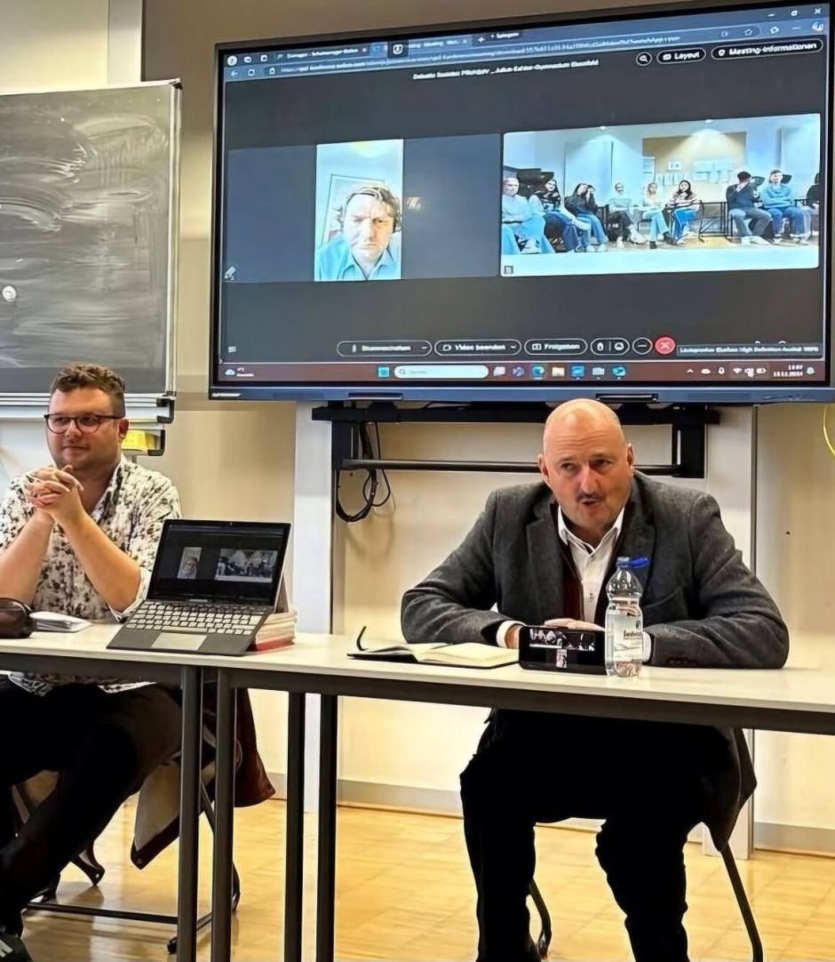 Am 18.11.2024 besuchten Bernd Rützel in Person und Erik von Malottki, per Video zugeschaltet, das Julius-Echter-Gymnasium. Im Rahmen eines Schulprojekts der Politikklasse 11A/C von Lehrer Fabian Fischer wurden Fragen der Jugendlichen rund um die heiß diskutierte Frage eines Soziales Pflichtjahrs aufschlussreich beantwortet.