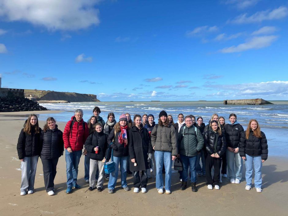 Eine Fahrt in die Normandie ohne Besuch eines Museums, das die Geschichte der Befreiung der Normandie von der Nazibesetzung zeigt, ist kaum vorstellbar; deshalb stand diesmal das frisch renovierte und mit interaktiven Elementen ausgestattete „Musée du débarquement“ in Arromanches auf dem Programm, in dem die Schülergruppe – ausgestattet mit Audioguides – alles rund um den D-Day präsentiert bekam. Auch der anschließende Film im 360° Kino über die „Bataille de Normandie“ ließ niemanden kalt. Die hier gewonnenen Eindrücke wurden durch den Besuch der deutschen Geschützbatterien von Longues-sur-mer für die Schülergruppe noch anschaulicher und greifbarer.