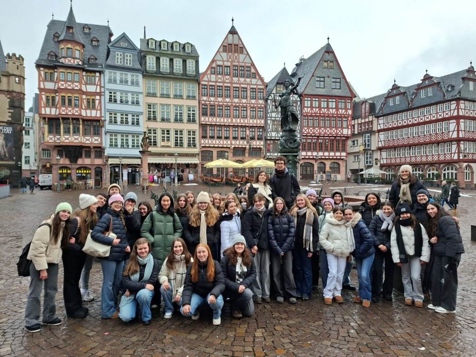 Das Programm umfasste auch den Besuch des stundenplanmäßigen Unterrichts am JEG sowie einen gemeinsamen Tagesausflug nach Frankfurt. Hier konnten die Schülerinnen und Schüler die Aussichtsplattform des Maintowers in 200 m Höhe besuchen, den „Römer“ besichtigen und mit VR-Brillen eine Zeitreise ins Frankfurt von 1891 unternehmen.