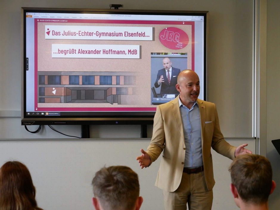 Schule trifft Politik: MdB Alexander Hoffmann zu Besuch am JEG