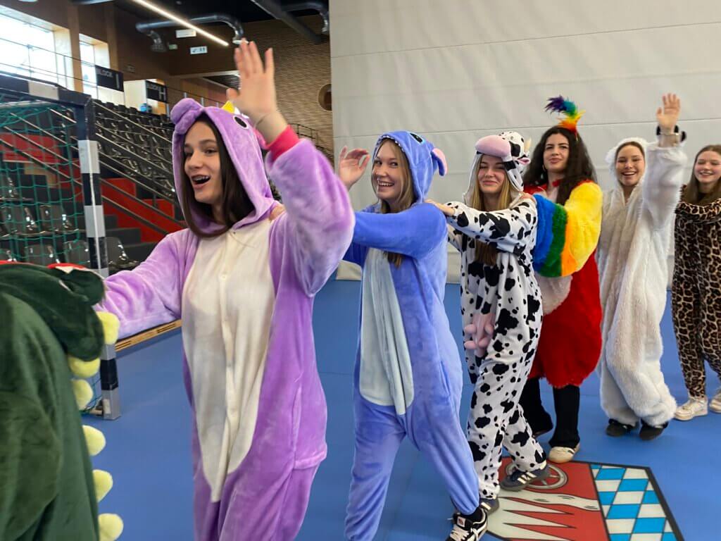 Am Freitag vor den Ferien verwandelte sich die Untermainhalle in einen bunten Dschungel, eine eisige Arktis und sogar in eine gefährliche Vulkanlandschaft – denn unter dem Motto „Bunte Tierwelt“ fand unser diesjähriger Sport- und Tutorenfasching der Unterstufe statt.
