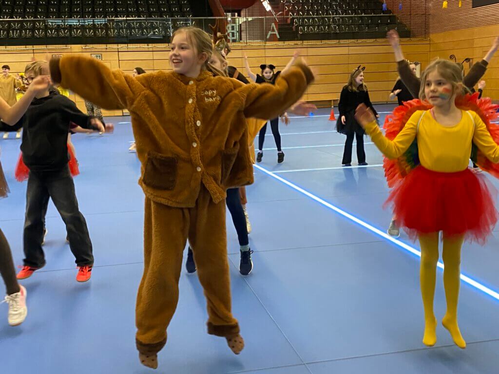 Nach dem Einzug mit einer fröhlichen Polonaise und einem schwungvollen Eröffnungstanz war schnell klar: Hier bleibt heute niemand still stehen! In fantasievollen und vor allem sporttauglichen Kostümen wurde gekrabbelt, gehüpft, gerobbt und gerannt.