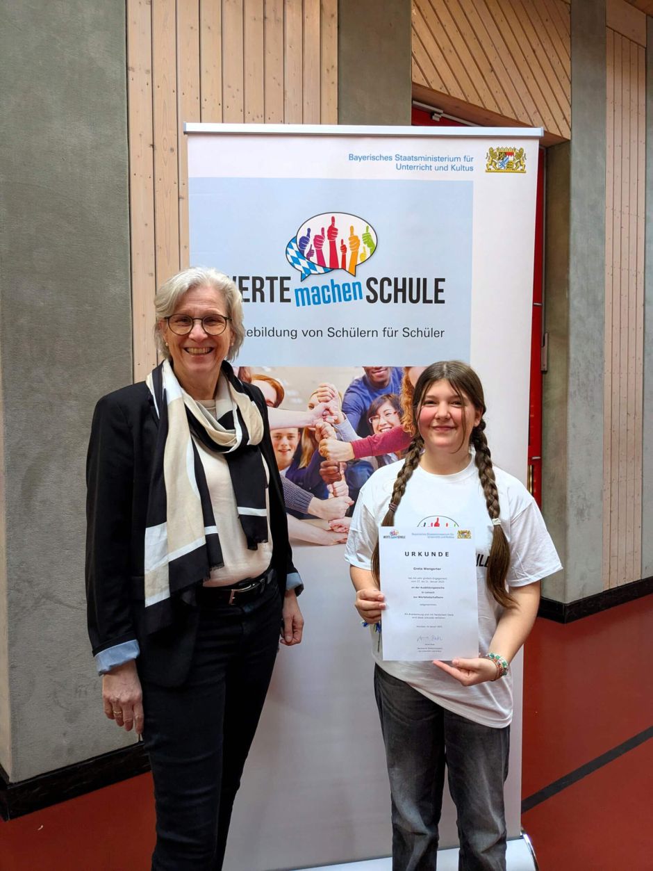 Eine Woche intensive Projektarbeit, Kreativität und Engagement fanden ihren Höhepunkt im Schullandheim Leinach, als das Bayerische Kultusministerium die Urkunden an die frischgebackenen Wertebotschafter*innen in Unterfranken verlieh. Greta Wengerter, Schülerin am Julius-Echter-Gymnasium, war eine der ausgewählten 25 Teilnehmerinnen und Teilnehmer und hatte nach der einwöchigen Ausbildung neue Freundschaften geschlossen und viele Ideen im Gepäck.