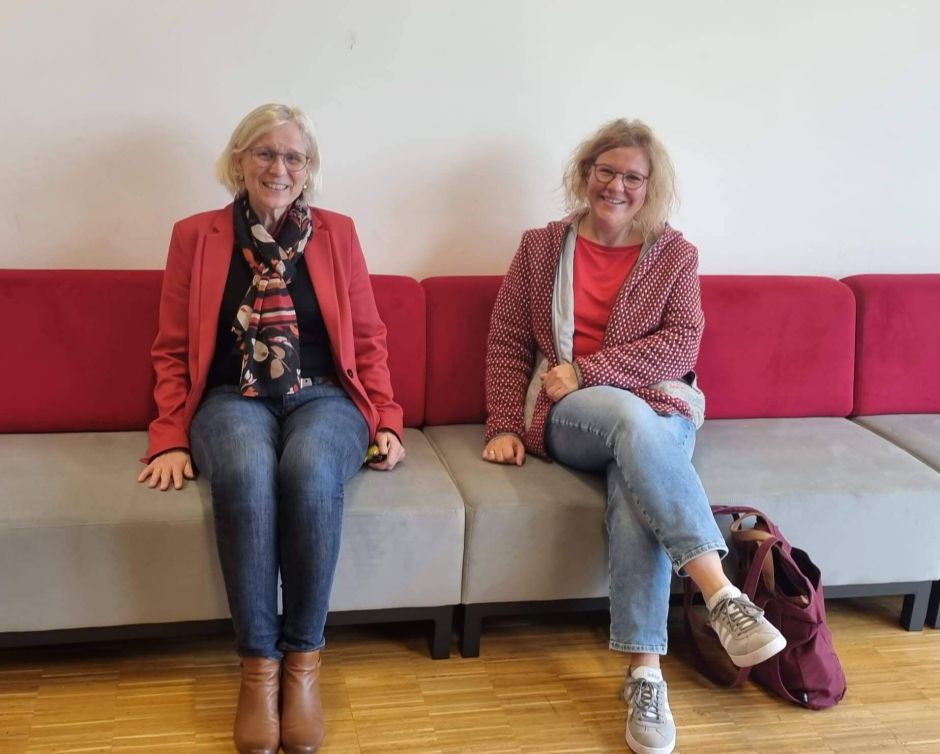 Am 7.11.2022 fand dann am Vormittag die offizielle Einweihung der neuen Sitzlandschaften statt. Im Beisein der Oberstufenkoordinatorinnen Andrea und Susanne Schneider bedankten sich die beiden Vertreterinnen der Jahrgangsstufen Q 11 und 12, nach einer allgemeinen Begrüßung durch Schulleiterin Petra Hein, persönlich beim Elternbeirat für die überaus großzügige Spende von 5.000 Euro, dank der die Aufenthaltsräume nun viel „farbenfroher und heller“ erscheinen. Der Spendenbeitrag wurde aus den Einnahmen des Schulfests zum 50-jährigen Jubiläum des JEG im vergangenen Juli bestritten; den Löwenanteil von nochmals 10 000 Euro übernahm der Landkreis als Sachaufwandsträger.