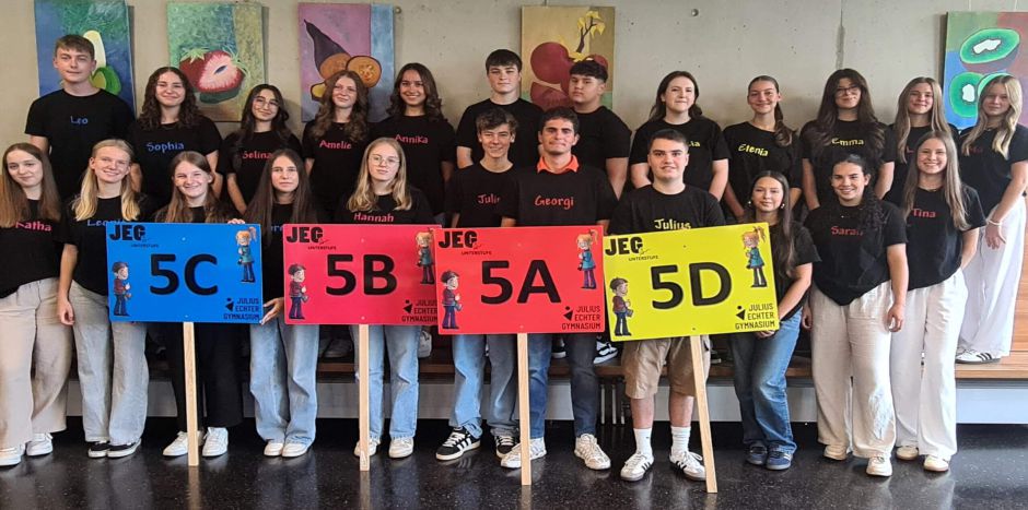 Beim Gang vorbei an den Klassenzimmern des JEG konnte man am Freitag etwas immer wieder Überraschendes beobachten: Alles schon wieder ganz normal. Die Schülerinnen und Schüler sitzen unaufgeregt an ihren Plätzen, Hefte und Bücher geöffnet, iPads im Einsatz, gerade so als lägen keine sechs Wochen Sommerferien dazwischen – außer dass alle ein bisschen erholter aussehen, als gegen Ende des Schuljahres. Besonders spannend zu sehen war, dass auch die neuen JEGler unserer 5. Klassen schon fast so wirken, als wären sie nicht erst vier Tage an unserer Schule. Bestens ausgestattet mit neuen Heften und Büchern sitzen sie in ihren Klassen, kennen ihre Mitschülerinnen und Mitschüler trotz neuer Zusammensetzung schon mit Namen, grüßen fröhlich die Lehrer auf den Gängen und laufen am Ende des Schultags völlig unaufgeregt an ihre Busse. Klingt alles sehr unspektakulär, dahinter steckt aber eine intensive Vorbereitung der ganzen Schulfamilie, damit der Beginn in ein neues Schuljahr reibungslos abläuft. Gereinigte Räume, neu eingelassene Böden, eine IT-Ausstattung, die in den Sommerferien in unzähligen Stunden auf aktuellen Stand gebracht wird, Klassenlisten, Stundenpläne, Fahrten und die Buchausgabe für alle Klassen und und … Alles muss bis ins Detail genau geplant werden. Ganz besonders gut natürlich der Ablauf der ersten Schultag für unsere neuen Schülerinnen und Schüler, die aus unterschiedlichsten Grundschulen kommen und in neuen Lerngruppen Freundschaften knüpfen und sich am JEG wohlfühlen sollen, weil auch dies zum Lernerfolg und einem erfolgreichen Übergang ans Gymnasium gehört. Wie es beim Blick in die Klassenzimmer wirkt, ist es auch in diesem Jahr dank eines engagierten Lehrerteams und motivierten Tutoren wieder gut gelungen, unseren neuen Gymnasiasten in den 5.Klassen einen guten Start zu ermöglichen. Nach einer herzlichen Begrüßung jedes einzelnen Kindes durch Schulleiterin Petra Hein in der Mensa und ein paar persönlicher Worte an die Eltern, konnten sich die meist sehr aufgeregten und gespannten Neuankömmlinge von ihrem Eltern verabschieden und ihr Klassenzimmer beziehen. Bereits um kurz nach 10 Uhr sah man nur noch fröhliche Gesichter, denn bei den Kennlernspielen mit den Tutorinnen und Tutoren wurde das Eis rasch gebrochen und auch viel gelacht. Zum Abbau der ersten Aufregung trug auch sicherlich bei, dass die erfahrenen Tutorinnen in Gruppen allen „Neuen“ das Schulhaus zeigten und die Buskinder am Ende der ersten beiden Schultage an eine der zahlreichen Haltestellen brachten. Die ersten Grundlagen für ein gelungenes Schulleben am JEG sind also gelegt, und auch wenn es sicherlich mal die ein oder andere Herausforderung geben wird, tragen der kommende Wandertag mit viel Spiel und Spaß mit den Tutorenteams, die JEG Challenge mit lustigen Aufgaben rund ums Schulhaus und der Schullandheimaufenthalt im Herbst weiter dazu bei, dass die „Neuen“ bald das Gefühl haben werden, nie woanders gewesen zu sein – einfach alles ganz normal.
