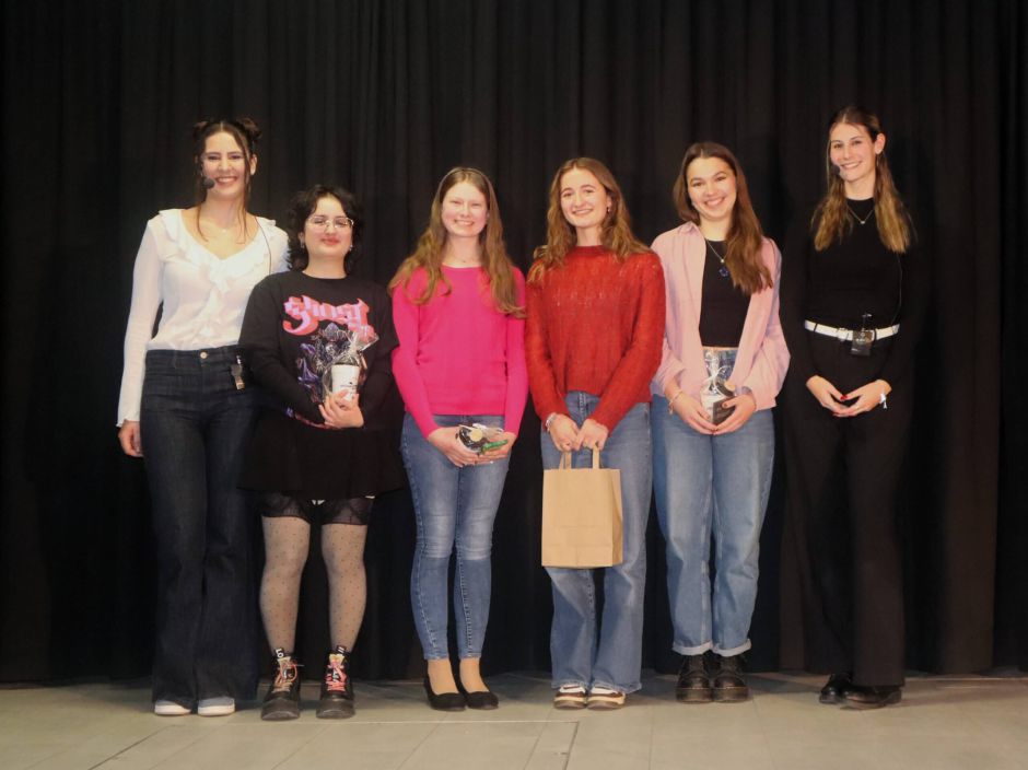 Schulleiterin Petra Hein zollte in ihrer Begrüßung den teilnehmenden Jugendlichen ihren Respekt dafür, dass sie den Mut haben, eigene, zum Teil sehr persönliche Texte vorzutragen. Hut ab! Als Moderatorenduo führten Lea Bachmann und Lilly Elzenheimer aus der Q 13 des JEG, beide selbst erfahrene Slammerinnen, souverän durchs Programm. Zu Beginn erklärten sie die Regeln: Es sollten nur eigene Texte präsentiert werden, und zwar innerhalb von 5 Minuten. Es gab zwei Runden; die Bewertung erfolgte durch das Publikum.
